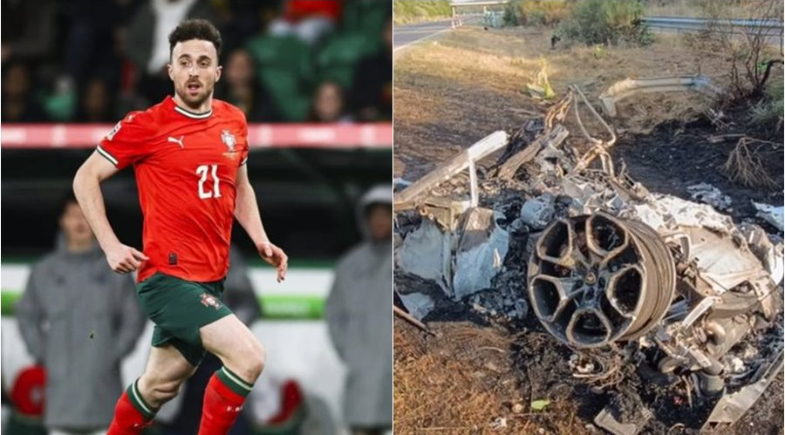 Um vídeo registrado no km 65 da rodovia A-52, em Sanabria, mostra o carro de Diogo Jota completamente destruído após o acidente que matou o jogador e seu irmão, André, nesta quinta-feira. O veículo saiu da pista, bateu e pegou fogo, deixando destroços espalhados pela estrada.