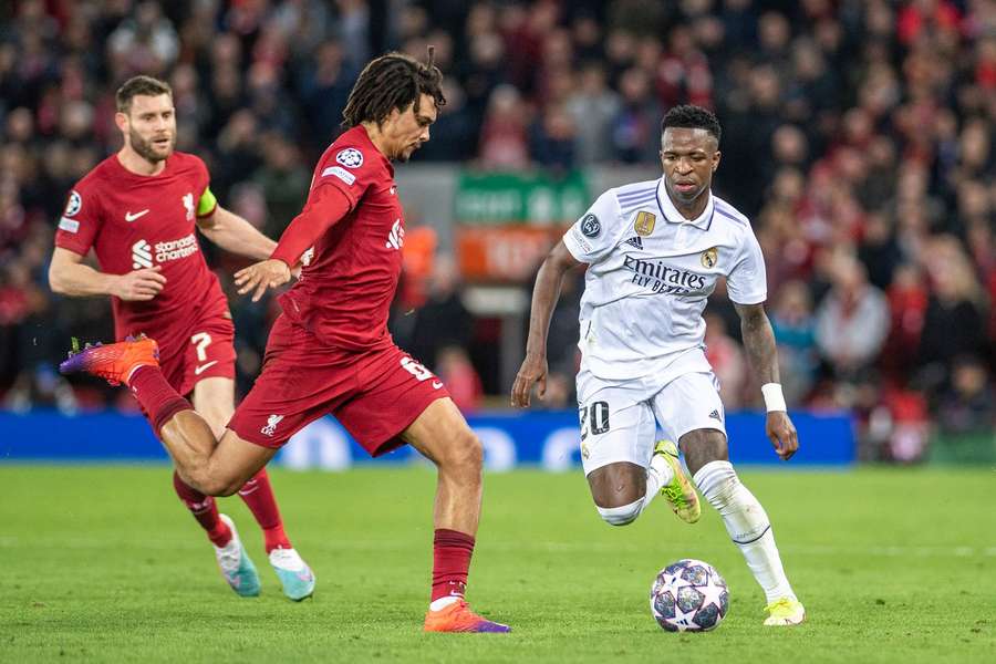 O brasileiro Vini Jr é um dos desfalques da equipe espanhola e não foi relacionado pelo técnico Carlo Ancelotti para enfrentar o Liverpool em Anfield. O motivo da ausência do camisa 7 merengue se deve a uma lesão no bíceps femoral da perna esquerda, sofrida em um jogo do Campeonato Espanhol no último domingo, contra o Leganés, que o clube acabou vencendo por 3 a 0 .