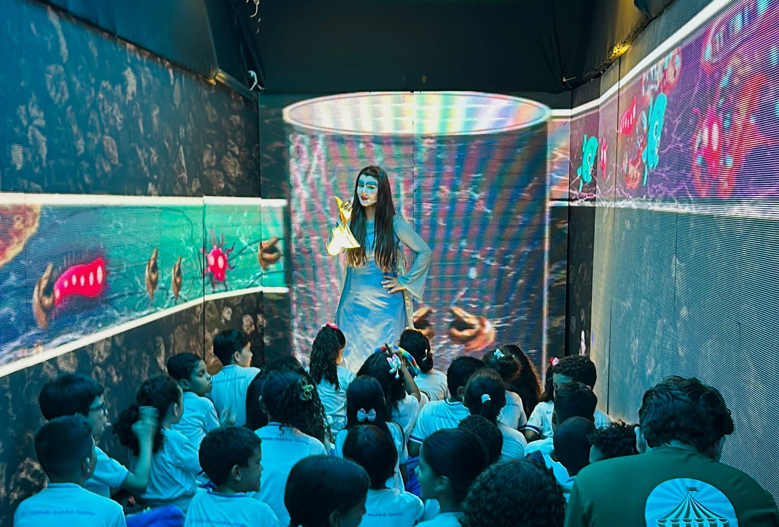 Todo o cenário é composto por uma visão de 180 graus em um espaço de 12×3 metros. Além disso, todo o cenário é digital, dando ao espectador a impressão de estar dentro da história, em uma realidade imersiva, estimulando os sentidos, de modo que essa interação e o usuário estejam próximo a uma atividade do mundo real. O Teatro Digital inicia suas visitas às escolas no dia 19 e segue até 22 de agosto, percorrendo 4 escolas municipais em uma carreta móvel.