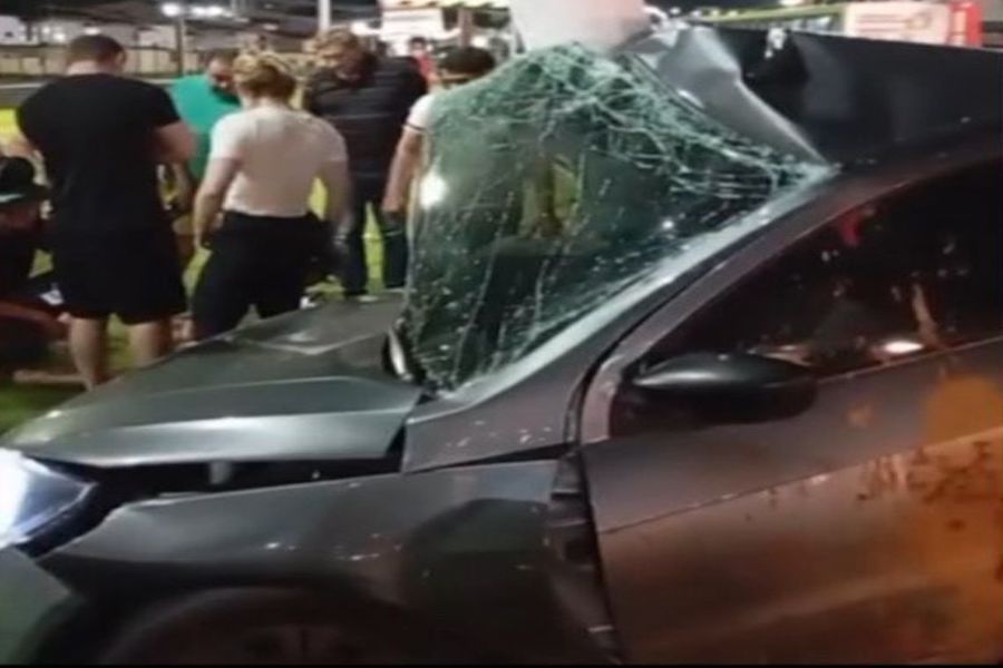 O impacto da batida foi tão forte que o carro ficou completamente deformado, partindo ao meio. Momentos depois, enquanto populares se aproximavam para prestar socorro e outros apenas observavam a cena, o poste atingido cedeu e caiu, por pouco não causando uma nova tragédia.