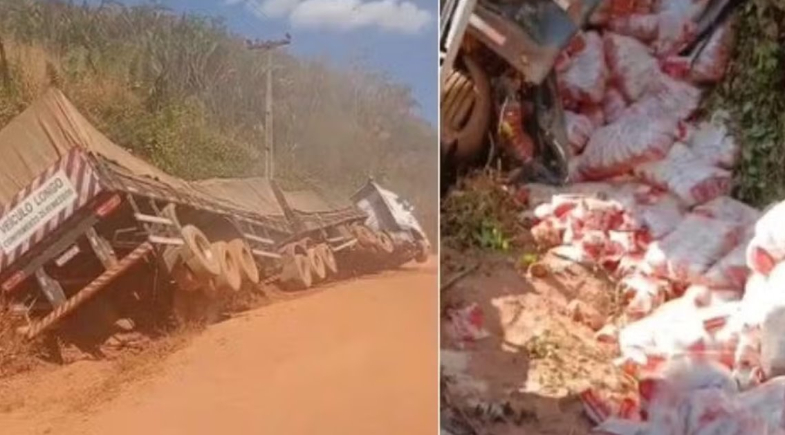 A Polícia Militar informou que a carreta, carregada de arroz, apresentou falha nos freios em um trecho sem asfalto. O motorista tentou alertar a vítima, mas não houve tempo.