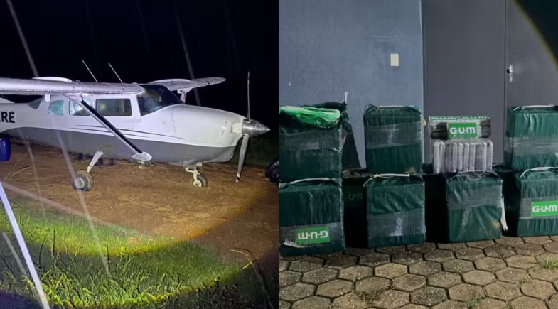 A Polícia Militar foi acionada e, ao chegar ao local, encontrou a carga de entorpecente dentro do avião.