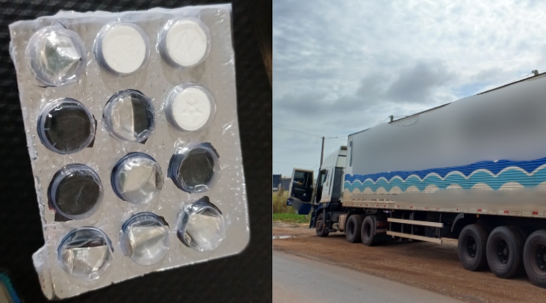 O motorista, de 26 anos, informou que vinha de Guarulhos (SP) e seguia para Belém (PA). A cartela continha três unidades, indicando que alguns comprimidos já haviam sido retirados.