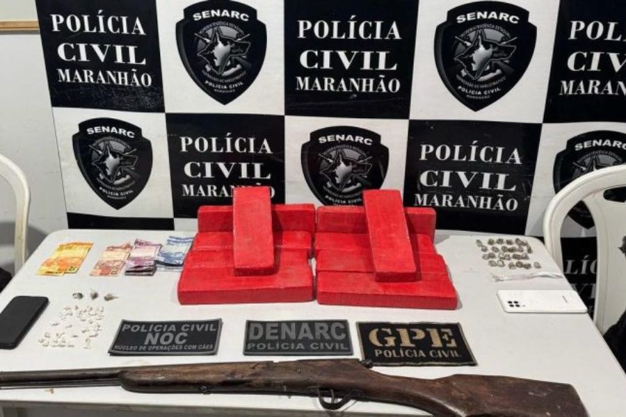 “No total, três pessoas foram presas em flagrante pelo crime de tráfico de drogas. A operação policial contou com a participação efetiva dos K9 Radar e Bóris, do Núcleo de Operações com Cães da Polícia Civil do Estado do Maranhão”, diz a nota da PC-MA.