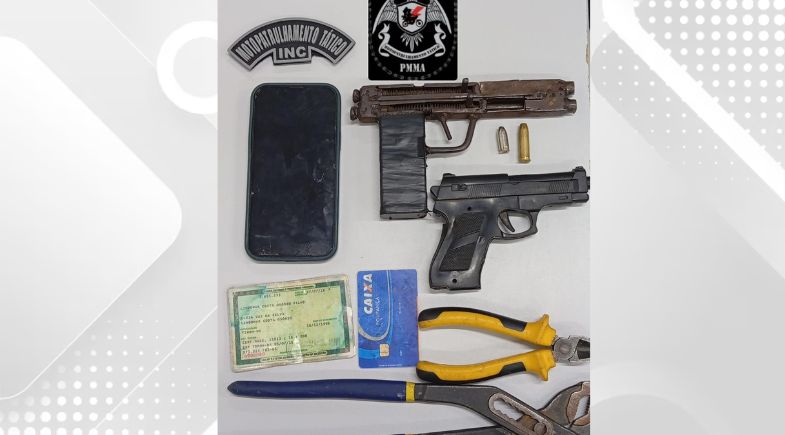 Foram encontradas uma arma de fogo de fabricação semi-industrial tipo calça bala cal. 38, e um simulacro de arma de fogo. O casal foi levado à Central de Flagrantes de Timon.