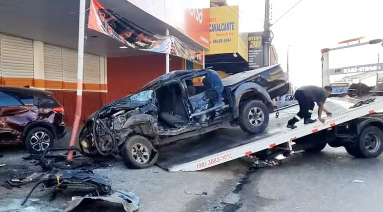 Segundo testemunhas, o ônibus colidiu com a caminhonete e arrastou o veículo até a frente de um estabelecimento comercial, onde havia dois carros estacionados, que acabaram sendo atingidos.