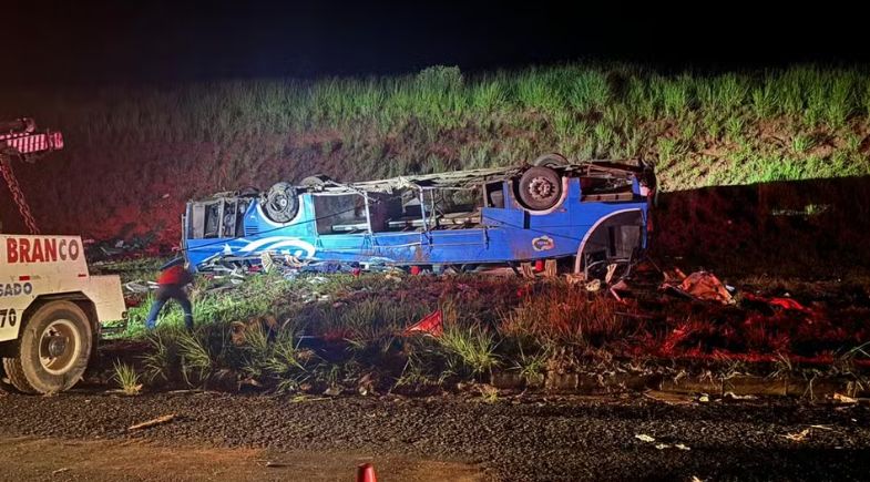 Pelo menos seis pessoas morreram e outras 45 ficaram feridas após o tombamento do ônibus na Rodovia Transbrasiliana. Segundo a Polícia Rodoviária Federal, o veículo tombou depois que um dos pneus estourou. Antes de tombar, o motorista perdeu o controle do ônibus e o veículo saiu da pista.