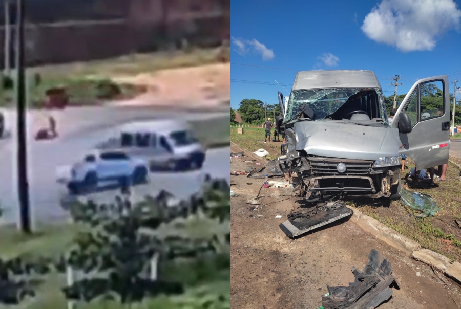 Era por volta das 13 horas desta quinta-feira (24). A van fazia uma manobra na rotatória, quando a caminhonete adentrou em alta velocidade e causou a colisão, lançando passageiros da van para fora do veículo.