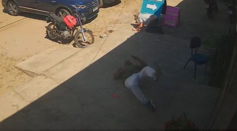 Imagens de segurança mostram o momento em que dois homens se aproximam de um segurança que está em pé na calçada. Ele reage rapidamente e começa a atirar. Na sequência, um terceiro suspeito, usando farda, tenta pegar um pedestre como refém. Nesse momento, outro segurança, que estava sentado, também reage. O suspeito armado solta o pedestre e dispara contra o segundo segurança, que é atingido e cai no chão, mas ainda consegue revidar os tiros.
