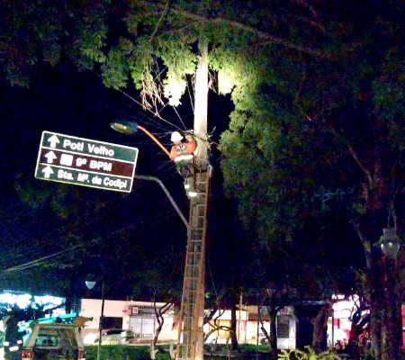 O fornecimento de energia também foi prejudicado pela alta incidência de raios e objetos metálicos lançados sobre a rede, como placas e outdoors, como registrado no bairro Primavera, na zona norte da capital.
