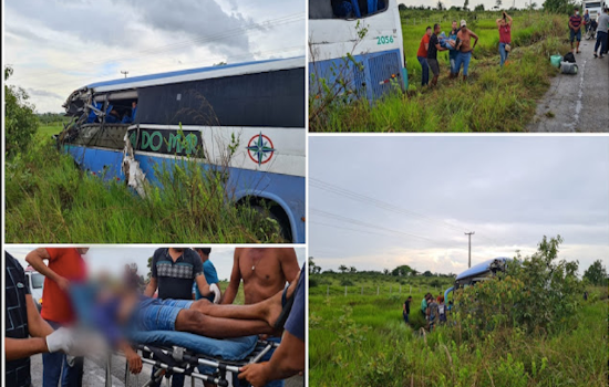 No início da tarde de quarta-feira (19), um ônibus com dezenas de passageiros bateu em uma caçamba, saiu da pista e deixou ao menos 12 feridos na BR-316, entre as cidades de Maranhãozinho e Presidente Médici.