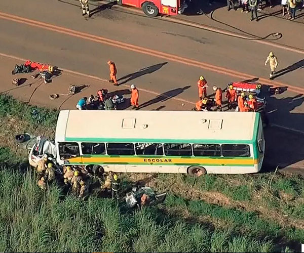 As duas vítimas que morreram na colisão estavam no carro, segundo os bombeiros. Segundo a Polícia Rodoviária Federal, 16 crianças ficaram feridas.