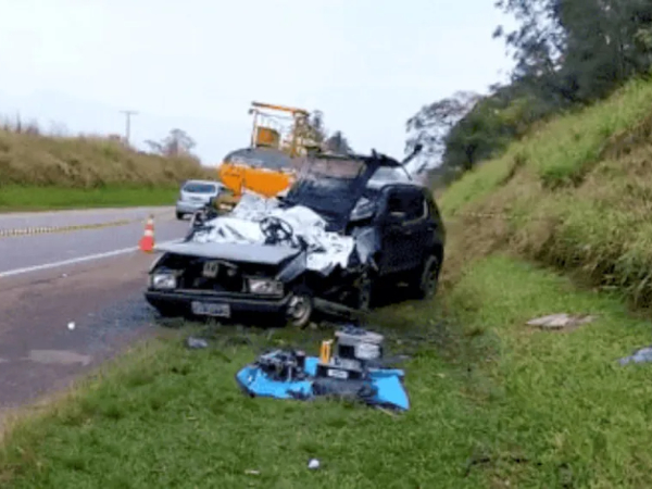 De acordo com a Polícia Rodoviária, uma caminhonete bateu na traseira do carro em que estavam os seis ocupantes. O veículo, modelo Parati, foi arrastado por cerca de 200 metros e pegou fogo em seguida.