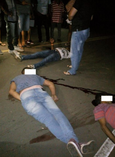 O primeiro acidente aconteceu por volta das 4hs, envolveu uma moto e uma bicicleta. os condutores da moto e da bicicleta e um garupa da moto tiveram morte imediata. uma outra pessoa que também estava na garupa da motocicleta ficou gravemente ferido.
