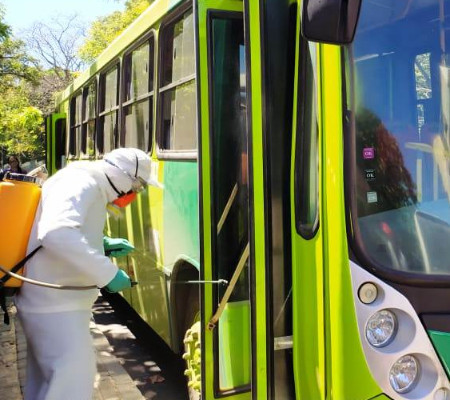 As ações de sanitização continuam sendo intensificadas nas áreas externas de espaços públicos e nos ônibus que circulam na capital. Somente no último final de semana foram realizadas 87 ações de sanitização em mercados, UBSs, UPAs, hospitais públicos e particulares, bancos e cemitérios da cidade.