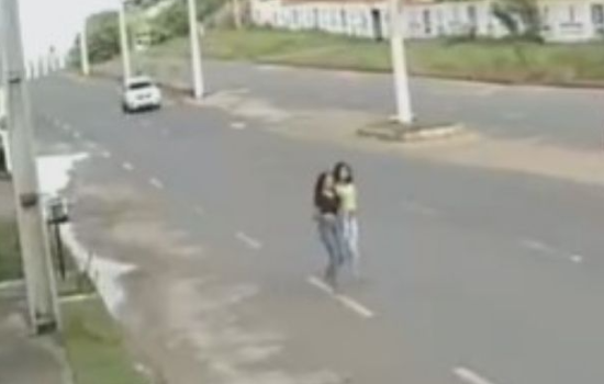 As imagens mostram também as adolescentes, na companhia de outros jovens, atravessando a via sem perceber a presença do veículo. Em seguida ocorre o incidente. As vítimas estavam indo para uma igreja da região.