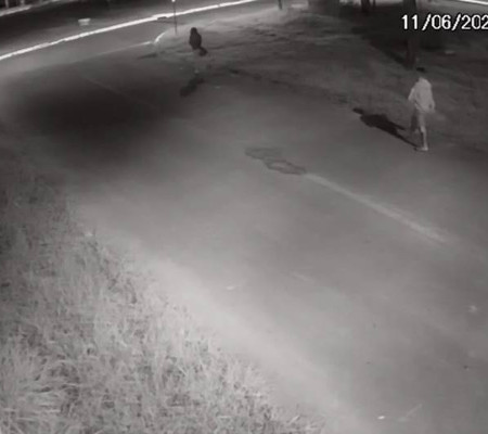 Câmeras de segurança da quadra mostram o suspeito caminhando atrás da vítima. As imagens não flagraram o momento do ataque, que, segundo o delegado, ocorreu mais à frente.