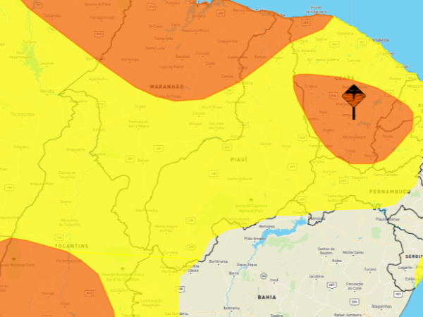 "Entre 23/02/2023 e 24/02/2023, chuvas de intensidade moderada a forte devem acontecer nas regiões norte e centro-norte, incluindo Teresina (PI), onde pode acontecer chuva de expressivo acumulado."