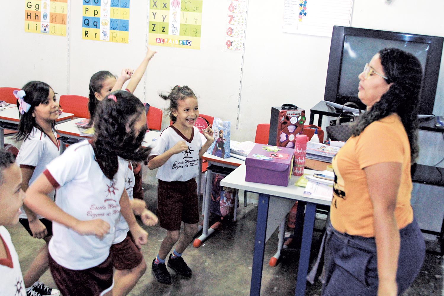 Karen Carvalho, professora do 1° ano do Ensino Fundamental, levou o som para a sala de aula e conversou com os alunos sobre as férias. “Eu tento levar autoestima e força de vontade para que eles não desistam do que querem alcançar, apesar deles estarem no primeiro ano, sempre estamos tentando levantar isso. O problema que encontra na questão da leitura, do ritmo, devido a pausa no período das férias. no retorno, a gente sente dificuldade. Por isso estimulamos sempre com roda da leitura, cantinho da leitura e cinema da leitura”, explicou.