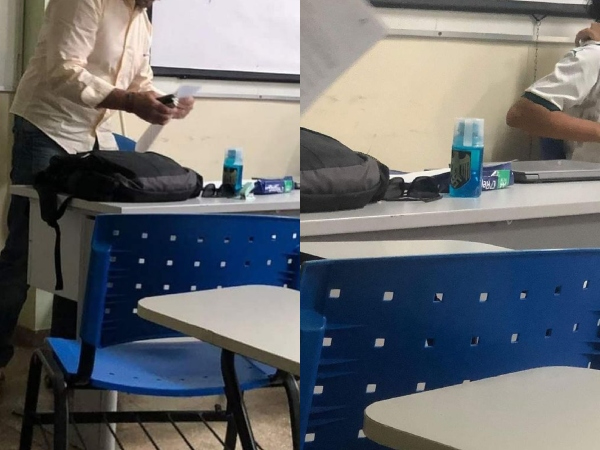 No Twitter, alunos postaram foto do professor com essa garrafa adesivada com um símbolo nazista. Segundo eles, tratava-se de uma aula do curso de Enfermagem, situação contrariada pela universidade. A instituição não citou o nome do professor nem confirmou que se tratava de uma classe do curso de Enfermagem. A denúncia foi repercutida no perfil oficial da União Nacional dos Estudantes (UNE).