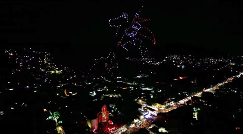 Drones desenham luta de São Jorge contra o dragão (Foto: Reprodução)