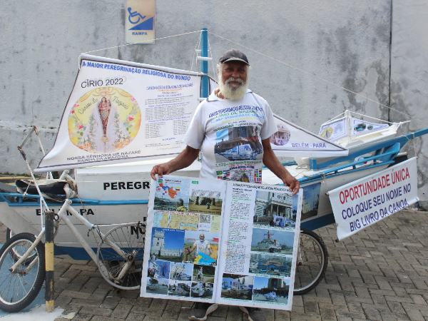 Movido pela fé, o andarilho Mateus Coutinho Aguiar, de 69 anos, saiu do Amapá empurrando um barco sobre rodas em homenagem ao Círio de Nazaré com destino ao Santuário Nacional de Nossa Senhora de Aparecida, localizado no interior de São Paulo. A peregrinação terá um percurso de 3,5 mil quilômetros e duração de seis meses.