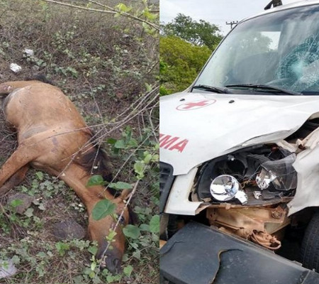 A ambulância do hospital Leônidas Melo, ficou bastante danificada. Já o animal teve morte imediata. O motorista teve apenas escoriações e passa bem.