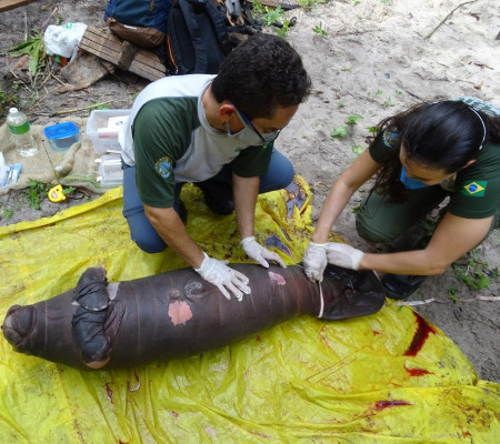 Segundo o ICMBio, pescadores que encontram o animal, afirmam que ele estava com hematomas na nadadeira e na cauda. No sábado (23), uma equipe do órgão e do Centro Nacional de Pesquisa e Conservação da Sociobiodiversidade (CNPT), se deslocaram até o local para a coleta de material biológico do animal, medição e registro fotográfico, para analisar as causas da morte.