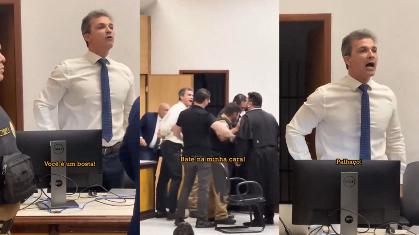 DISPARO DE OFENSAS: O vídeo divulgado pelos advogados nas redes sociais mostra a confusão durante o julgamento. No vídeo, o promotor é visto dirigindo ofensas aos advogados, chamando-os de "safado", "pilantra" e "bosta". O conflito levou à dissolução da sessão, que tratava de um caso envolvendo oito pessoas acusadas de participação em homicídios relacionados ao tráfico de drogas na região.