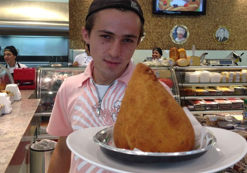O programador de informática Erick Aranega, de 23 anos, que venceu no ano passado o desafio de devorar um hambúrguer gigante e também um campeonato de quem comia mais cachorro-quente, consumiu na terça-feira (11) uma coxinha de 1 kg em uma padaria na Zona Norte de São Paulo. Ele foi o 44° cliente a conseguir o feito, mas a comilança teve uma peculiaridade: o glutão precisou de apenas 3 minutos e 1 segundo para ingerir o salgado inteiro. Com isso, ele superou o recorde anterior, que era de 3 minutos e 43 segundos.