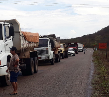 A estrutura ficou sobre a rodovia e impediu que vários caminhões, veículos de passeio e motociclistas passassem