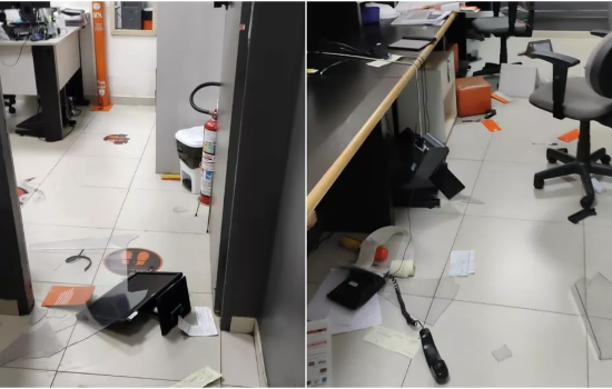 A confusão foi registrada na madrugada desta sexta-feira (25) e, segundo a testemunha, aconteceu porque o voo do cliente foi remarcado. Imagens mostram o balcão com telefone e computador no chão, além de papéis jogados e a proteção de vidro totalmente quebrada.