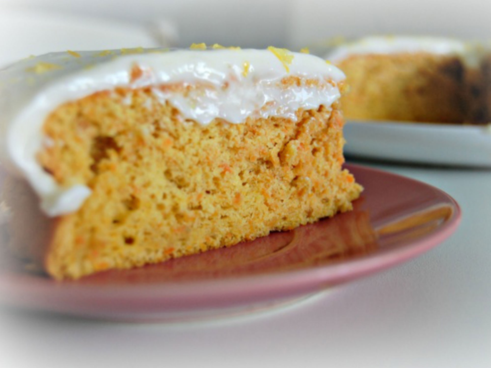 Esvazie um pote de iogurte natural em um coador forrado com uma camada dupla de gaze de algodão (ou filtro de papel para coador de café) sobre uma vasilha. Cubra com filme plástico e deixe na geladeira durante a noite, por cerca de 6 a 8 horas para ganhar a consistência de cream cheese. Adicione o mel a gosto, uma pitada de sal e um pouco das raspas de limão. Misture bem. Espalhe generosamente sobre o bolo quente. Decore com algumas raspas de laranja por cima.
