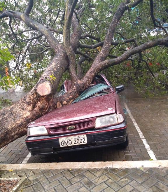 Uma árvore caiu nesta manhã de segunda-feira(1º), em cima de veículo estacionado na praça da Graça em Parnaíba, litoral do Piauí. O automóvel de passeio Versailles GL, com placas de São José dos Campos/SP, ficou parcialmente destruído.