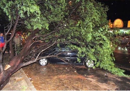 Uma árvore centenária caiu em cima de um veículo na Avenida São Sebastião, na noite de ontem sexta-feira (02), durante a forte chuva que atingiu a cidade de Parnaíba. A ocorrência foi registrada por trás do Mirante. O carro foi destruído e ninguém ficou ferido.
