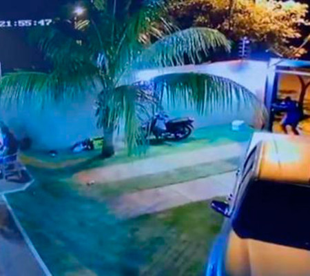 Vídeos mostram o momento exato em que dois suspeitos invadem o local e efetuam diversos disparos contra a vítima que, no momento da ação, estava reunido em um churrasco com a família.