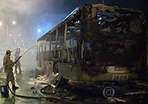 Segundo testemunhas, os bandidos agiram com muita violência. ?Dois elementos entraram dentro do ônibus e começaram a jogar gasolina. Tipo assim, nas meninas e aí ela pediu [a mãe] para não jogar nas meninas. Aí jogaram cada vez mais, eles jogaram nelas e jogaram fogo?, conta uma testemunha.