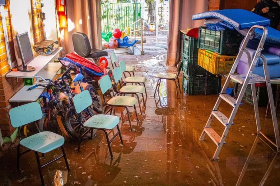 Segundo a secretaria, quase todas as 99 escolas da rede e as 219 parceiras foram atingidas pelas enchentes. As situações mais críticas são: