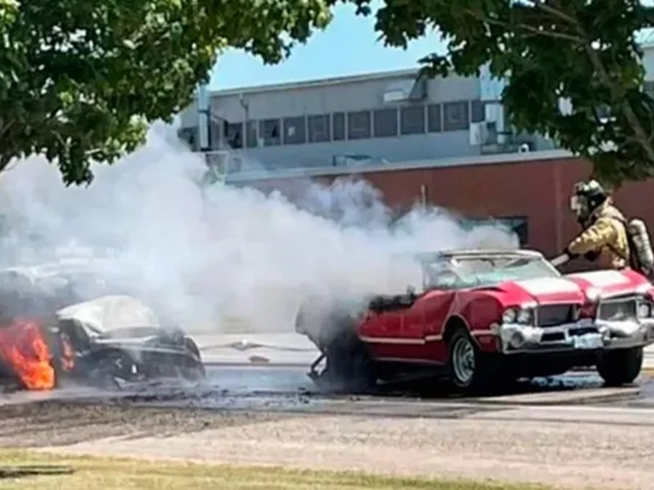 A foto em questão mostrava um bombeiro tentando controlar o incêndio de dois carros: um conversível vermelho à frente e um sedã prata atrás. Aparentemente houve uma colisão traseira e ambos os carros foram tomados pelo fogo. O carro da avó do cantor aparenta estar com o fogo controlado, já que a fumaça que sai dele é branca, indicando ser apenas a presença de calor e vapor d'água. Já o carro de trás continua em chamas.
