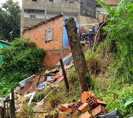 O deslizamento de terra foi registrado por volta das 9h30 desta quinta. Na hora, havia cinco pessoas dentro da casa: o casal, dois filhos do casal e a neta deles. No total, quatro pessoas ficam soterradas.