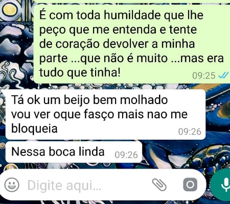 O sócio de Nascimento também depositou a quantia de R$ 800 e uma outra amiga do empresário realizou um depósito de R$ 1,3 mil. Para ela, o golpista até afirmou que devolveria o dinheiro pessoalmente e enviou 'cantadas', a elogiando.
