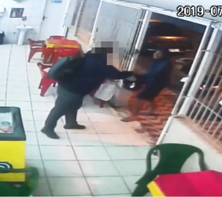 Câmeras de monitoramento de uma padaria em São Vicente, no litoral de São Paulo, flagraram a ação de dois assaltantes que levaram uma motocicleta de um dos clientes do comércio. Segundo apurado pelo G1, a dupla havia acabado de roubar um carro, que ficou sem gasolina, e decidiram fazer um 'pit-stop' no comércio para continuar a fuga. Até a publicação desta matéria, ninguém havia sido localizado.