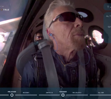 Neste domingo, o magnata britânico saiu à frente de Jeff Bezos, fundador da Amazon, e se torna o primeiro empresário a voar em uma espaçonave desenvolvida por sua própria empresa.