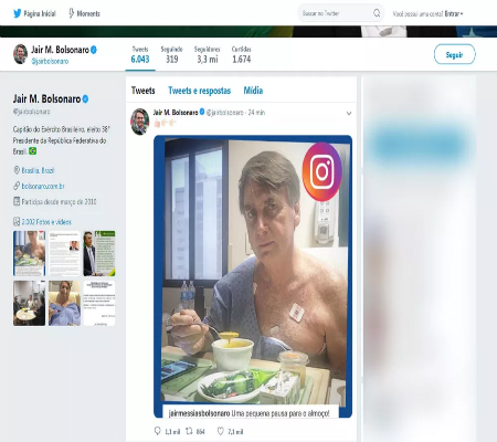 Bolsonaro retirou o dreno colocado no seu abdômen e a sonda nasogástrica. Ele também se alimentou pela primeira vez.