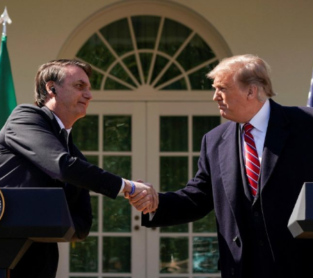 A nova agenda não estaria completa sem um duro ataque a qualquer sinal de governos que tenham simpatia por pontos de vista e políticas de esquerda. Para deixar isso claro, ele voltou a justificar as ditaduras do Cone Sul, desta vez feita sem citar nomes. Parte do ataque visava Nicolas Maduro, na Venezuela, e o regime cubano. Mas o tom usado também serviu de alerta para qualquer outro país sul-americano que, em eleições, possam voltar a retomar o caminho de governos de esquerda. Não faltaria, porém, um sinal muito claro em seu discurso de que existe sim um alinhamento total entre o Itamaraty e a Casa Branca. Donald Trump foi o único líder a ser citado pelo brasileiro e, claro, de forma elogiosa e agradecida por seu papel de aliado. Afinal, até a soberania tem seus limites. Logo depois de Bolsonaro tomar a palavra, foi a vez do mandatário americano. A coincidência no uso de diversas dos termos não ocorreu por acaso. O discurso brasileiro foi alvo de consultas com a Casa Branca, algo inédito na história democrática do Brasil.