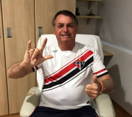 A primeira-dama Michelle Bolsonaro postou uma foto do marido nas suas redes sociais nesta manhã. O presidente aparece sorrindo e fazendo um sinal de positivo com a mão (veja acima). Ele usa uma camisa do time de futebol cearense Ferroviário Atlético Clube (FAC), de Fortaleza.