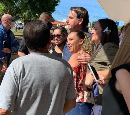 O presidente Jair Bolsonaro deixou o Palácio do Planalto na manhã deste sábado (30) e fez um voo de helicóptero até Abadiânia, no Entorno do Distrito Federal. Após pousar, Bolsonaro foi até uma lanchonete na BR-060, onde foi fotografado com uma máscara pendurada no ombro enquanto comia um salgado. A visita do presidente gerou aglomeração no local. Sem máscara, o presidente tirou fotos com apoiadores. Ele chegou a abraçar algumas pessoas, contrariando as recomendações de isolamento social. As informações são do G1.