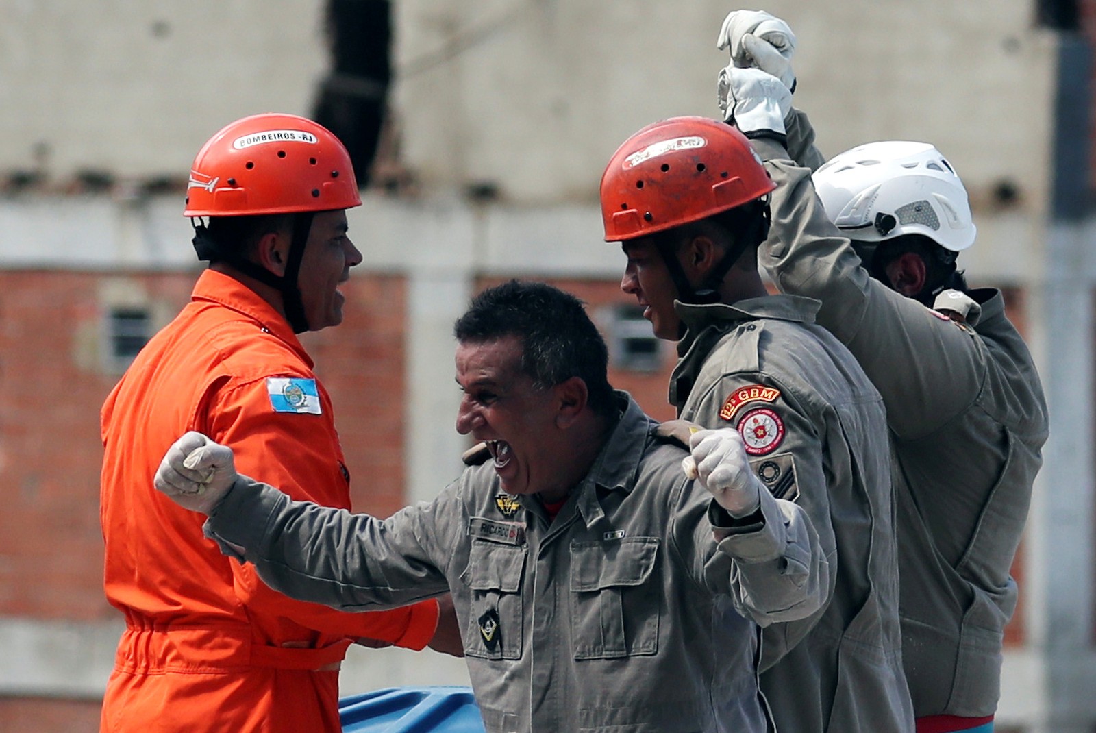 Os bombeiros trabalham desde cedo no resgate das vítimas e tiveram dificuldades para acessar o local. Itens como água, oxigênio e até um gerador tiveram que ser levados para o local do acidente pelos militares e com a ajuda dos moradores. Antes da chegada do Corpo de Bombeiros, moradores se esforçavam na missão de encontrar sobreviventes entre os escombros.