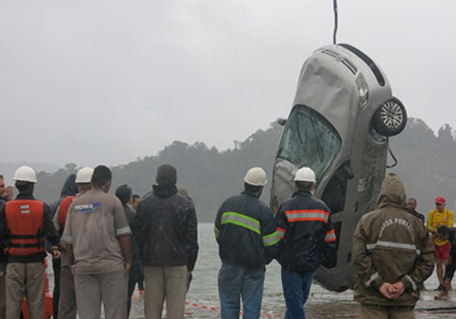 Segundo informações da Companhia Docas do Estado de São Paulo (Codesp), o acidente aconteceu por volta das 2h55, mas apenas às 7h30 o órgão ficou sabendo do ocorrido. O carro caiu no mar nas proximidades do Portão 4 do Cais, no Saboó, e os bombeiros chegaram ao local às 8h. Com a ajuda de mergulhadores, o veículo foi facilmente achado e removido do mar.