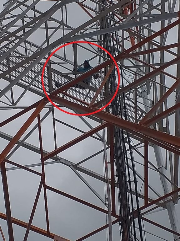 Por cordas a equipe de resgate conseguiu retirá-lo. Não foi divulgado o motivo que fez com que o homem subisse na torre.